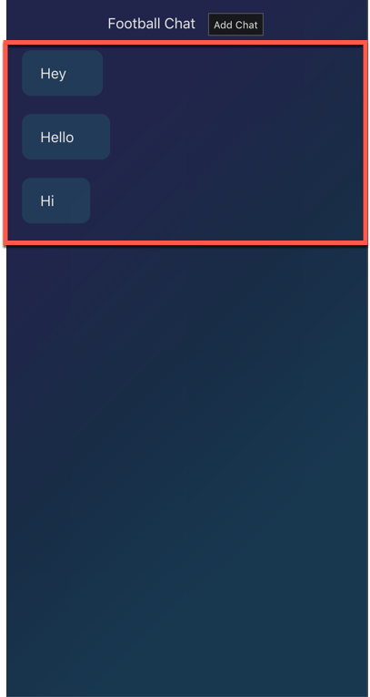 The Chats component renders the list of chats, and for this, it needs a chatList prop. This is basically an Array. In this case, an array of 3 string values, ["Hey", "Hello", "Hi"].